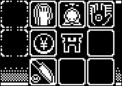 On combat screen, you can see your enemy, their stats, as well as use various actions located in Offensive, Defensive, Support and Spiritual menus. These actions are arranged in 9x9 grid, with central tile showing which menu you have open at the moment.