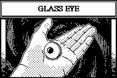 Once equipped, the user will shove the Glass Eye into their eye, destroying their real eye in the process. This is proven to be painful and devastating, as blood seeps down from the affected eye socket.