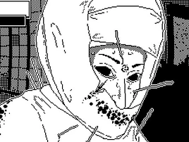 White Death appears to be a female vampire, she is dressed up in something that resembles a traditional japanese wedding gown, her face is partialy obscured by it, only her eyes, nose and a cult symbol on her forehead can be seen. Her mouth is covered, but outlines of her bloody teeth can be seen on the gown. She also seems to be covered in numerous needles that have been stuck into her, along with a bloody cut along her cheek.